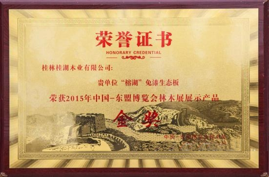 榕湖免漆生態(tài)板榮獲“2015年中國(guó)-東盟博覽會(huì)林木展展示產(chǎn)品金獎(jiǎng)”