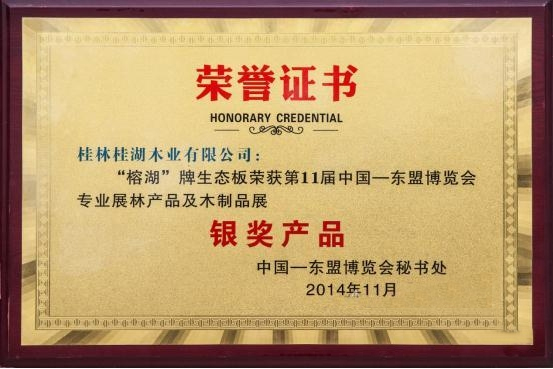 “榕湖”牌生態(tài)板榮獲“第11屆中國(guó)——東盟博覽會(huì)專(zhuān)業(yè)展林產(chǎn)品及木制品展銀獎(jiǎng)產(chǎn)品”